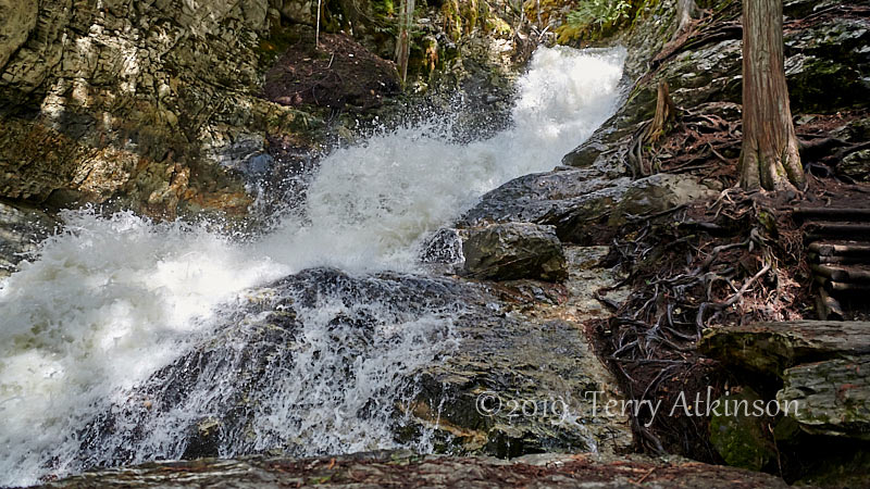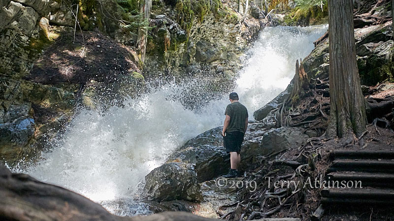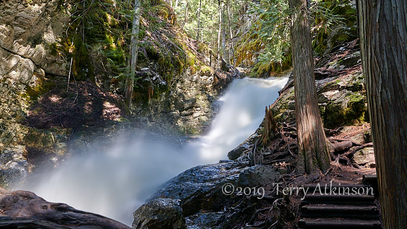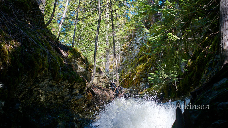 BX Falls is a smallish waterfall which interupts BX Creek. BX Creek is fed by the runoff of snow melt from Silver Star mountain. In the spring, despite its small size, the falls can rage spectacularly. Here is a link to the Vernon Tourism page on the falls and hiking in the area.