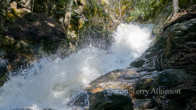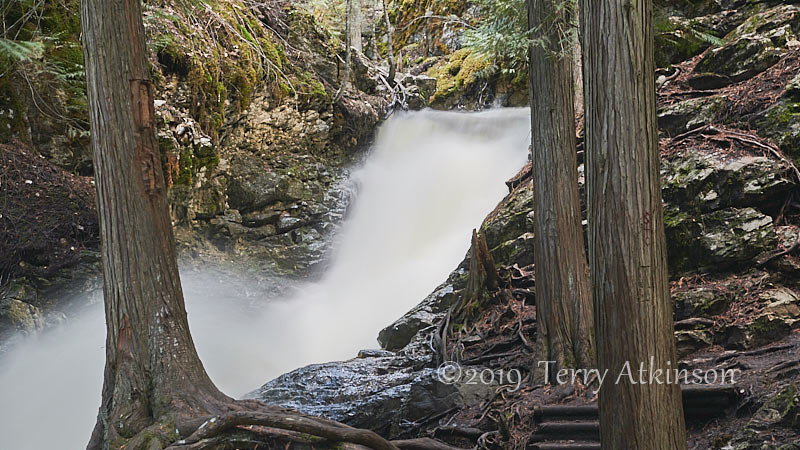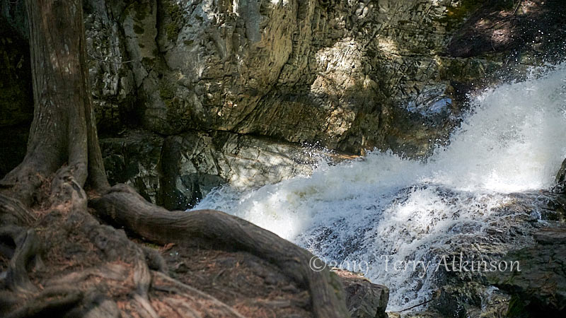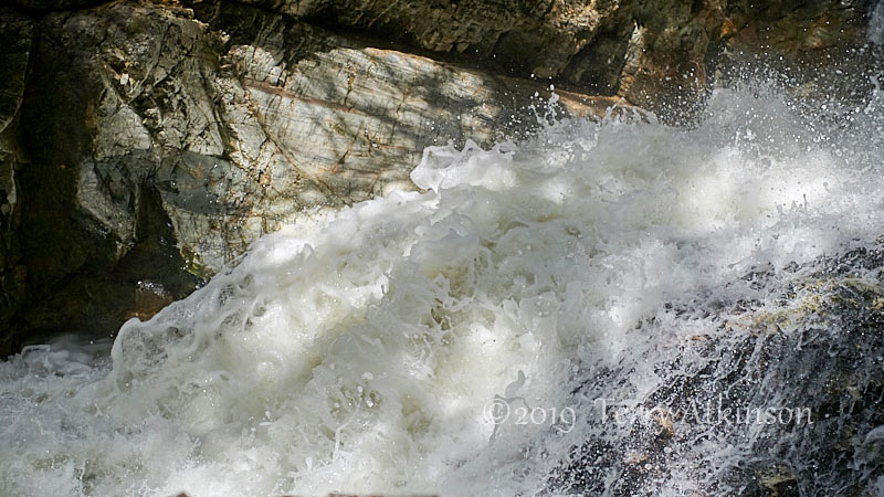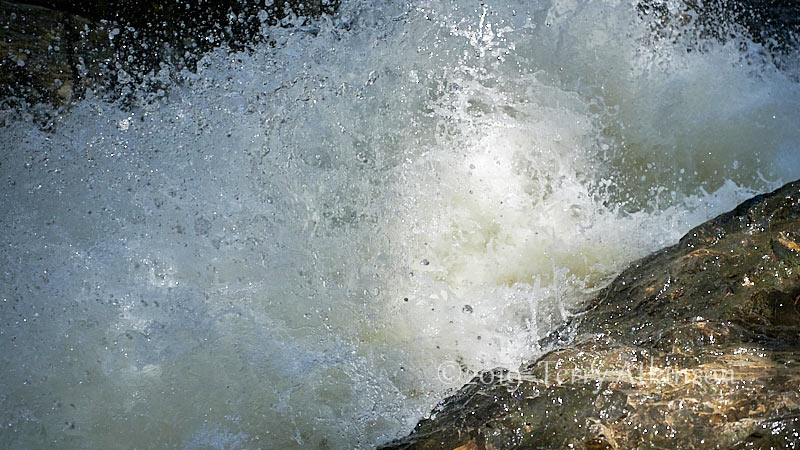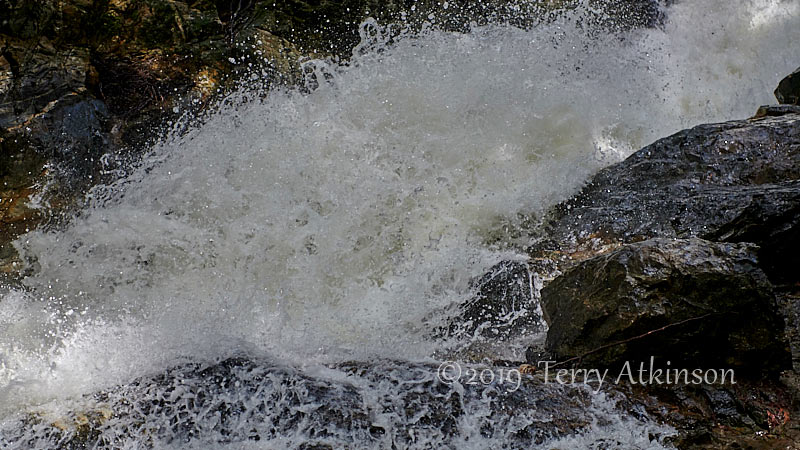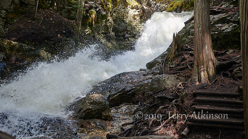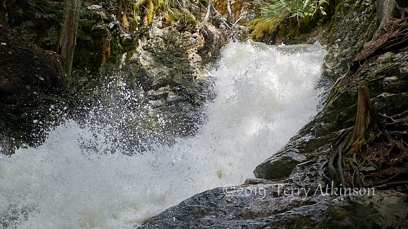 These photos were taken in late April. As you can see, the flow of water over the rocks is impressive. The images were shot either at a very fast shutter speed (1/1600 or so), effectively stopping the water mid-air, or a very slow shutter speed (2-3 seconds), giving it a silky look.