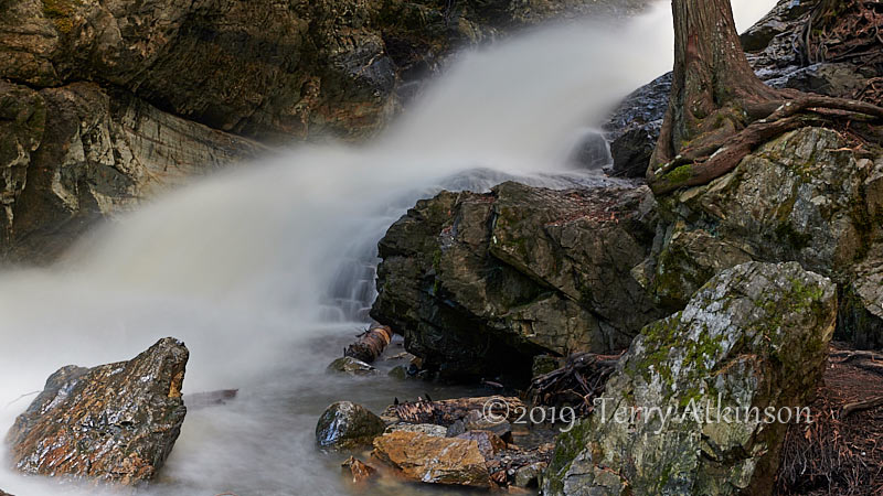 I have arranged the photos so the fast and slow shutter speed images are sequenced next to each other. It is interesting how the same picture looks quite different. In particular, the silky look of the water in the long exposure shots allows more space for the texture of the rest of the photo to jump out. The rocks, the exposed roots, and the moss growing on the rocks is quite striking. The four shots at the end are quite mystical to my eye.